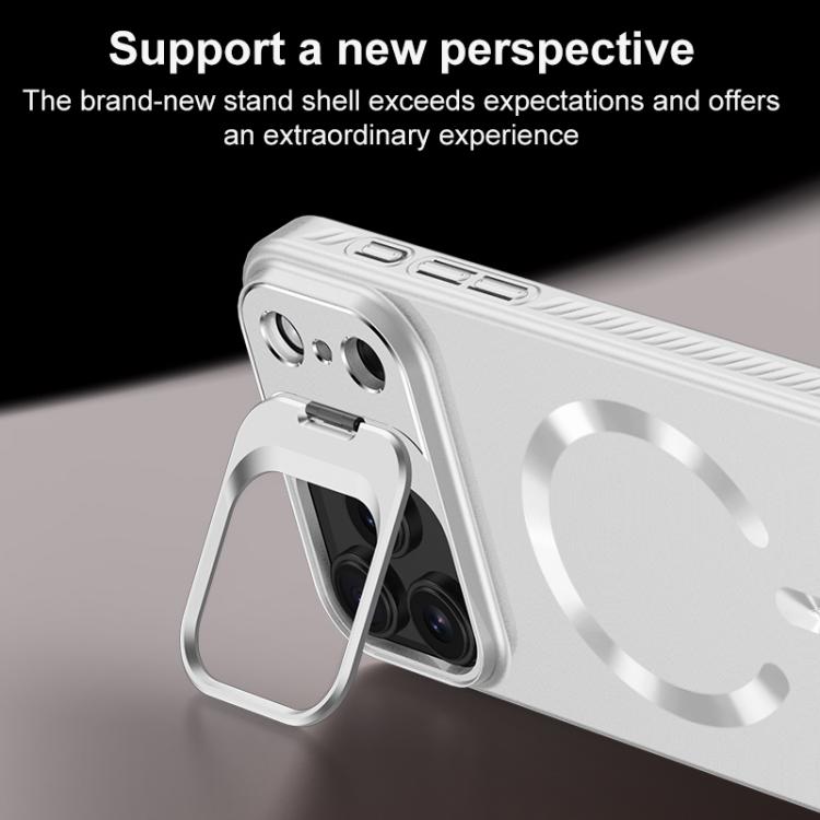 2. The camera frame features a built-in, hidden foldable kickstand that instantly transforms into a phone stand with a simple flip.