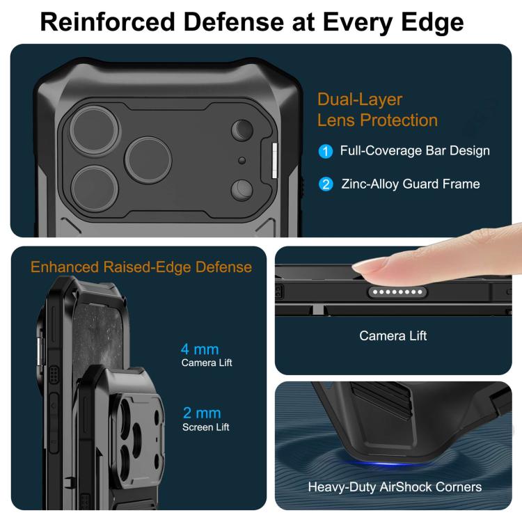 3. Built with a high-strength zinc alloy frame, shock-absorbing silicone inner layer, and durable tempered glass, delivering a perfect balance of rigidity and flexibility.